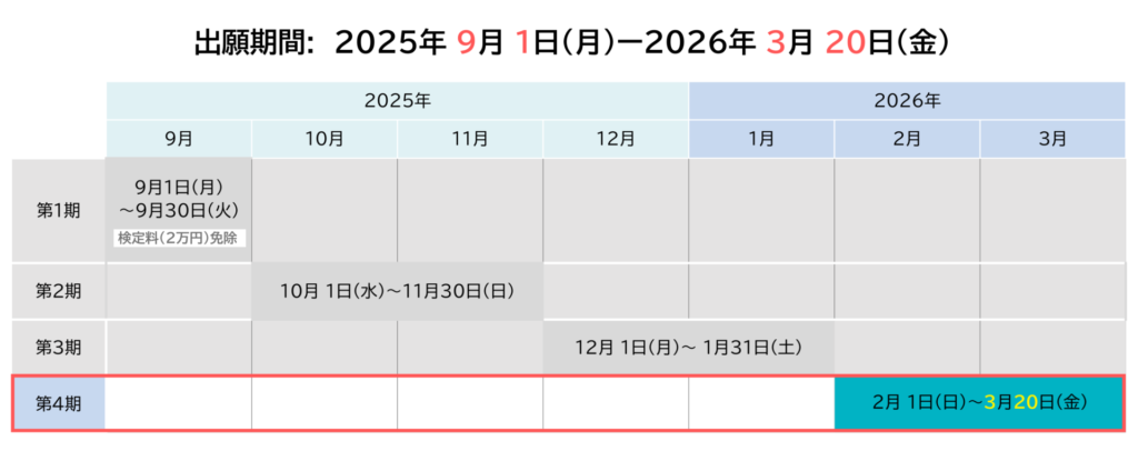 | 第4期 | 2026年 2月1日(日) | ~ | 2026年 3月20日(金) |