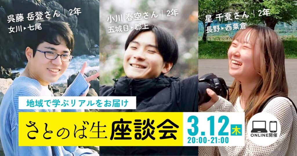 | 3/12 (木) | 20:00-21:00 | 💻🗣️さとのば生座談会【年度内最終回】 |