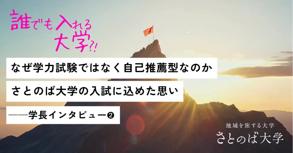 総合型選抜で「たった3分の面接で、私の何がわかるの」という悲鳴のような声が聞こえてくる時期に、この言葉は重く響きます。さとのば大学の入試は「落とすための試験」ではありません。その人の想いを聴き、さとのば大学という場がその人にとって本当に合っているのかを、お互いに確認するための時間なのです。